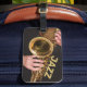For the jazz musician! Keep track of your luggage with this acrylic luggage tag for travelers featuring the photo image of a jazzman playing his time-worn, gold coloured, tenor saxophone horn along with the word "JAZZ" printed in gold coloured, bold letters.
