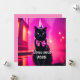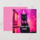 Festive New Year's square card featuring vibrant fantasy artwork. A stylish black cat with a pointed hat and purple bow tie is sporting a jazzy look, and it comes with the French New Year's greeting "Bonne année."