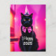 Join us for a cheerful New Year's celebration with a casual Postcard showcasing lively fantasy artwork! A stylish black cat with a pointed hat and purple bow tie is sporting a jazzy look, accompanied by the text "Happy 2025" and a funny quote on the other side: "Feline good about the year ahead—let's party!"