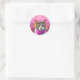 A vibrant spring sticker with whimsical artwork. This charming tabby wearing a magenta scarf, posing outdoors in a meadow with wild flowers in the background.Embracing a jazzy vibe with a cheerful "Hello Spring" note.