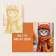 Introducing our charming Folded Foil Greeting Card, adorned with luxurious golden foil printing on the front, set against a pristine white background. Inside, you’ll discover vibrant and vivid prints showcasing a delightful fantasy artwork of a jazzy tabby cat dressed in cosy autumn attire. This whimsical design by Alma Wad using Canva AI, perfectly captures the cosy charm of the fall season.