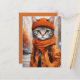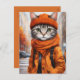 Postcard featuring vivid fantasy artwork of a jazzy tabby cat dressed in warm autumn attire. Created by the human designer Alma Wad using Canva AI, this whimsical design captures the cosy charm of fall. Perfect for cat lovers, especially those who enjoy playful, amusing cats and the vibrant hues of autumn. A unique and heartwarming card for the season!