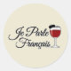 Je Parle Francais I speak French wine glass beret Classic Round Sticker
