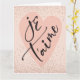 Say I love you with this Valentine's Day or anniversary greeting card featuring a hand lettered graphic of the French phrase "Je t'aime" meaning I love you. A heart and confetti polka dots completes the sentiment.