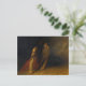 Postcard features 'The Witch' by Belgian painter Jean-Francois Portaels. It is a nineteenth century oil-on-canvas painting of an unnerving woman with long auburn hair and a black cat.