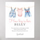 Get guests laughing with this How Big Is Her Belly baby shower sign. Styled with watercolor baby clothes on a rustic clothesline, soft denim blues, and blush pinks, this game lets guests guess the size of the mummy-to-be’s belly. Closest guess wins! A sweet and interactive addition to your denim blue jean baby shower.