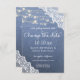 Things change. Send a save the date card to get your guests ready to celebrate your wedding or party with this blue jean, lace, and string lights country floral save the date card. on faux jean