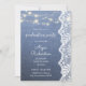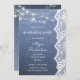 Invite your friends & family to your graduation with this cute country jean, lace, & string lights graduation party invitations.