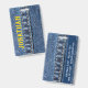 Classic design on denim background. Badges hold up well on luggage. They don't crack or break easily. Add your name, initials, etc. for personalisation.