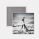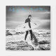 Fridge magnet with a moody black and white photo of a surfer crossing the reef to go and surf the amazing tubes at Jeffrey's Bay in South Africa.