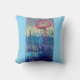 Jelly fish design on a pillow. Original Painting by Joy Lomenick, transferred to pillow to help create your beachy decor. Wonderful colours of the blue ocean and sunny colours help make your room into your own personal ocean oasis.