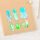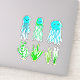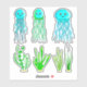 A trio of cute jellyfish in green and blues ans a selection of seaweed.