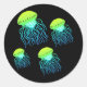 Luminescent jellyfish design. Floating flotilla of vibrant neon coloured jellyfish.