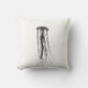A throw pillow featuring a vectorised photograph of a jellyfish in inverted black and white, giving the art print an inky look. Colour on the back is solid grey. Click "Customise it!" to change this.