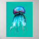 Cute aquatic design of under the sea theme blue jellyfish from original watercolor art work. Colorful, beautiful fish art theme sea life design.