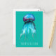 Cute aquatic design of under the sea theme blue jellyfish from original watercolor art work. Colourful, beautiful fish art theme sea life design.