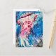 Watercolor original artwork of pink jellyfish in underwater ocean theme. Ocean sea art theme. Colourful jellyfish.