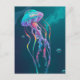 jellyfish with rainbow leds on its tentacle illuminating the surroundings, deep sea