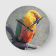 The clock did not take as long to arrive as I thought it might and was extremely well packaged. I didn't do the measurements so I didn't realize it is a little smaller than the average clock but that does not matter (just make sure you check if that's important to you).It is really nifty! It seems very solid and well made not flimsy at all. It has been going well and has kept good time in its few weeks on my wall. Nice product. Gets noticed too! Nicer in real life than the picture but true to the picture