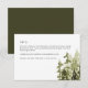 This wedding details enclosure card features rustic green watercolor pine trees and bohemian handwritten font. Easily edit all wording to match your wedding or invitation enclosure card needs.