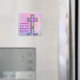 Pretty pink and purple colours "Name's First Holy Communion", with the date, magnet, an original art design with a special cross with star burst all reflected in the peaceful water ripples below. Easily change the date and you can personalise with a name also. Remember this special holy day with magnets for your family and friends. Can also be used for baby's baptism, confirmation, Easter events, etc.