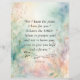 This watercolor design features delicate botanicals in soft shades of blue, green, and coral, creating a serene and dreamy atmosphere. The gentle blending of colours evokes a sense of tranquillity and harmony. The inspiring Bible verse, Jeremiah 29:11, is at the centre of this composition, elegantly displayed, reminding us of hope and divine purpose. The overall effect is uplifting and calming, making it a perfect addition to any space needing encouragement and serenity. This artwork captures the essence of nature and faith in a visually stunning way.