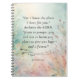 This watercolor design features delicate botanicals in soft shades of blue, green, and coral, creating a serene and dreamy atmosphere. The gentle blending of colours evokes a sense of tranquillity and harmony. The inspiring Bible verse, Jeremiah 29:11, is at the centre of this composition, elegantly displayed, reminding us of hope and divine purpose. The overall effect is uplifting and calming, making it a perfect addition to any space needing encouragement and serenity. This artwork captures the essence of nature and faith in a visually stunning way.