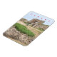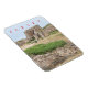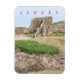 A beautiful view of the ruins of Grosnez Castle on the island of Jersey in the Channel Islands printed on a souvenir fridge magnet.