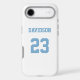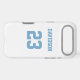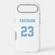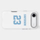 Add a name and number(s) to personalise this custom white and light blue sports jersey inspired phone case. It is an excellent gift for a sports fan or athlete. The options to change the colour and font sizes are available.