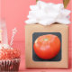 Fresh, red, ripe jersey tomato placed conveniently on a sticker.