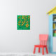 Poster featuring colourful floral painting, beautiful sunflowers on emerald green. Helianthus tuberosus is also known as Jerusalem artichoke, topinambur, sunroot, sunchoke, or earth apple. These shining yellow flowers are blooming from late summer to fall.