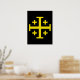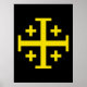 Jerusalem cross is a heraldic cross and Christian cross variant consisting of a large cross potent surrounded by four smaller Greek crosses, one in each quadrant. It was used as the emblem and coat of arms of the Kingdom of Jerusalem from the 1280s.