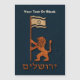 A digital "carved wood sign" depicting the lion emblem of the city of Jerusalem; and the lion is holding a flag of Israel. Hebrew text reading, "ירושלים" (Yerooshalayim - Jerusalem) appears below the lion. Add your own additional text.