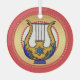 An illustration of the David's harp with a Star of David decoration. Colourful illustration for a Jesse Tree Advent Calendar. Golden foil look accent.