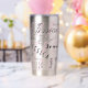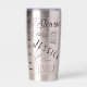 A custom name tumbler showcasing "Jessica" in multiple styles over a background script initial "J". The black, pink, and silver colours offer a timeless look, ensuring your drink remains yours with the prominently displayed name.