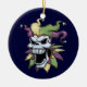 Evil jester skull with big evil grin. Original pen & ink drawing, with digital Mardi Gras colours. T-shirts, sweats, mugs, gift items.
