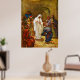 This image is a traditional religious painting or illustration depicting a scene where a figure, widely recognized as Jesus Christ, appears to a group of individuals. The central figure stands prominently in a bright, white robe, emanating a sense of light or presence. Around him are several figures, appearing to be men wearing robes and head coverings typical of the biblical era. Some are standing and looking towards the central figure, while one figure is shown kneeling in the foreground, reaching out or bowing in reverence. The scene takes place in an interior setting with arched architectural elements and warm, dramatic lighting. The artwork employs a classical painting style with realistic figures and rich colors to convey the solemnity and spiritual significance of the event.
