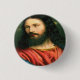 Jesus button has Jesus with his arms cross and he has a blue and red outfit on