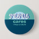 Jesus Cares. 1 Peter 5:7 (KJV) - Ocean Blue - 7.5 Cm Round Badge