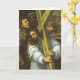 Jesus carries cross Greeting card has Jesus with his arms around a cross and he has to carries it a long ways.this is a vintage photo from the early 1900 The text can be changed to what ever you want it to be so enjoy the colours you feel are great for you
