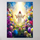 Happy Easter with this vibrant holiday decor featuring jesus christ, vibrant easter eggs and floral art for the resurrection scene.