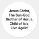 Jesus Christ, The Sun-God, Brother of Horus, Child of Isis, Live Again! Conscious Splash-Art sticker-design by Jeff Hankamer at Artjunkhaus