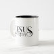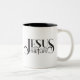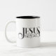 Coffee mug is shown in black and white with a Jesus is the way print.