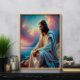 This peaceful image of Jesus seated beside calm waters captures a moment of introspection and divine connection. Dressed in elegant robes, He gazes thoughtfully at the horizon, where a radiant sunset fills the sky with vibrant hues. The serene landscape, with its gentle waves and rugged rocks, highlights a harmonious balance between strength and peace. His expression radiates wisdom and compassion, inviting viewers to reflect on faith and the beauty of creation. This portrayal symbolises Christ's role as a source of solace, offering spiritual guidance and inspiration through life’s challenges.