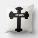 JESUS IN WHITE TEXT ON A BLACK CROSS