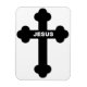 JESUS IN WHITE TEXT ON A BLACK CROSS
