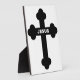 JESUS IN WHITE TEXT ON A BLACK CROSS