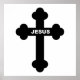 JESUS IN WHITE TEXT ON A BLACK CROSS