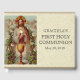 This is a beautiful vintage image of Jesus holding the Eucharist surrounded by cherubs and flowers. A gold chalice is in the foreground.