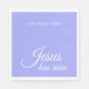 Personalised these Easter napkins with your own text. You can add your family name, your church name, or a short text. "Jesus has risen" written in elegant white script will add faith inspiration to your Easter table. These simple modern script paper napkins will look great on your Easter table. The purple blue solid colour is taken from the blue bell flower. Add some blue bell cut flowers, some blossoms and some glassware for a chic, stylish botanical Easter table scape. All the contemporary typography is editable if you like to customise these Easter holiday napkins. Great for a faith filled family Easter, or church sunrise service, or Christian charity or mission dinner or banquet.